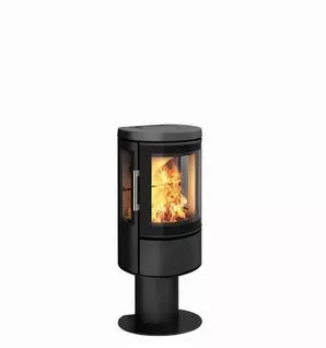 Part of the HWAM 2600 series, this stove is designed by Danish designers Henrik Sørig and Tobias Jacobsen, combining refined elegance with a compact form. Set on a plinth, the HWAM 2610m becomes a subtle focal point, elevating the fire for enhanced visual impact. The efficient airwash system helps keep the glass clean, allowing a clear view of the flames through the gently curved cast-iron door.